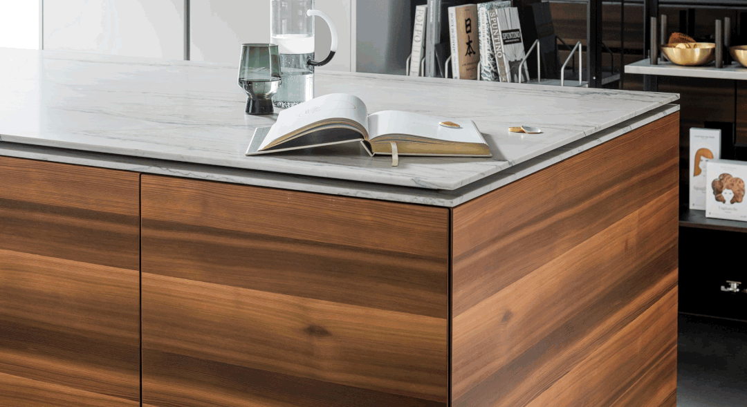超薄天然石材活动台面系统,实现多种厨房使用场景的切换,打造灵动灵动的生活空间。