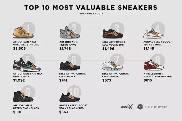 还公布了一个很有意思的数据,就是当季贵的潮鞋。看看里面有没有你买过的~