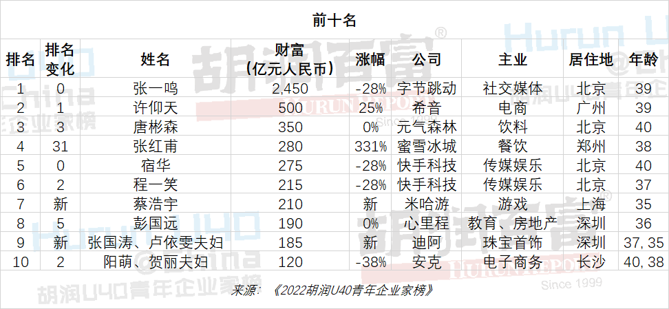 提供优质榜单和调研的胡润研究院发布“2022胡润U40青年企业家榜”