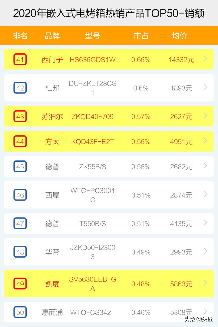 2020年电烤箱销量TOP 10品牌和2020 2020电烤箱热销产品TOP 50等你来拿!