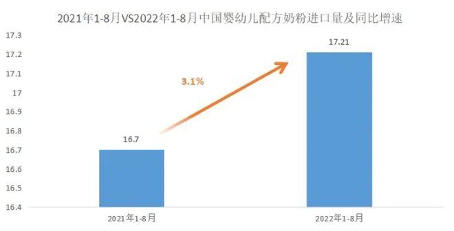 从今年前8个月的数据来看,婴幼儿配方粉进口量小幅增长。