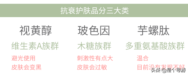 9.用对抗衰护肤品。当下抗衰护肤品分三大类,主要是成分在起作用:
