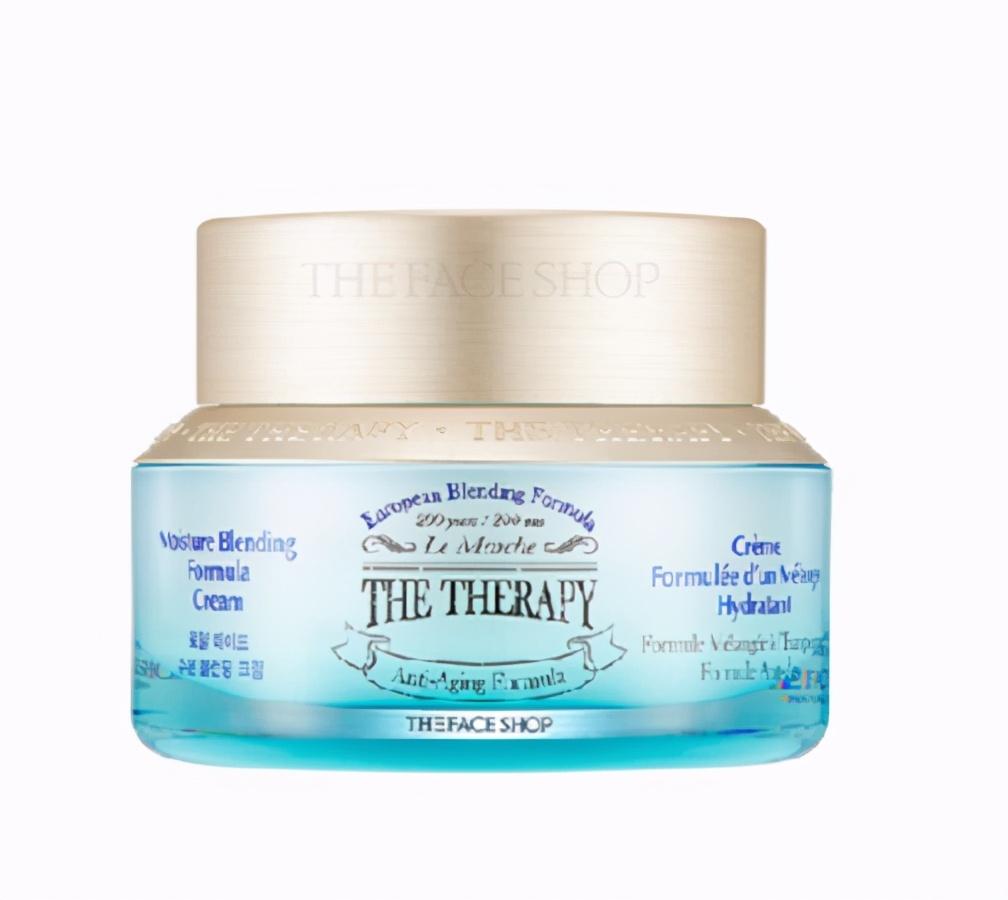 THE FACE SHOP推出的The Therapy滋养面霜添加了天然植物萃取精华与天然精油,质地类似冰淇淋般滋润,以抗老化、抗干燥、高水分三合一与一次性修护的诉求,获得韩国女生喜爱。