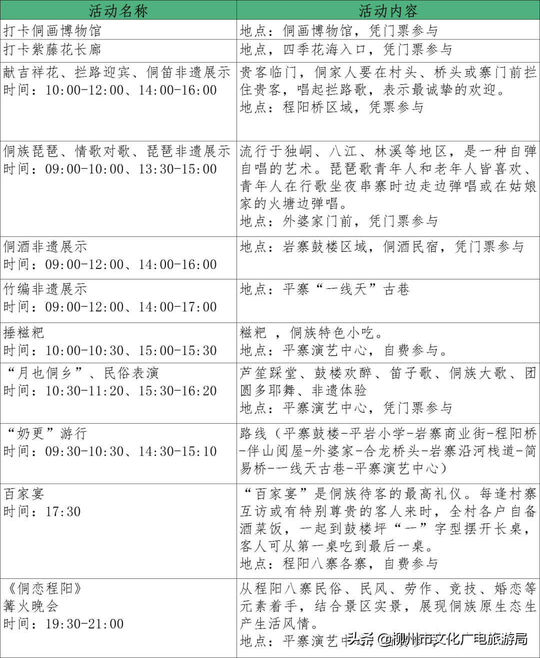 活动内容:油茶宴、三江口游船、多耶、捶糍粑等侗族特色活动