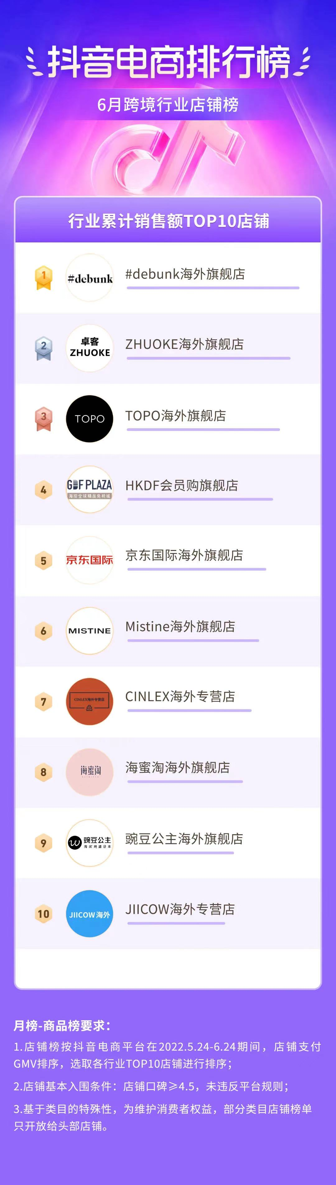 7月10日抖音电商发布6月抖音电商排行榜,提炼抖音电商13个核心行业赛道排名前10的爆款、品牌、店铺和潜力商品,助力品牌、商家带来洞察消费的未来,规划“下一步动作”。《快消品》筛选其中与快消品相关的内容进行发布,具体内容如下: