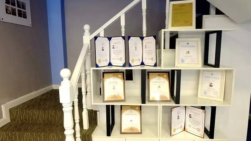 在二楼拐角处可以看到所有美容师获得的各类资质证书,会让人很放心将自己宝贵的“肌肤”交给这群靠谱的人。
