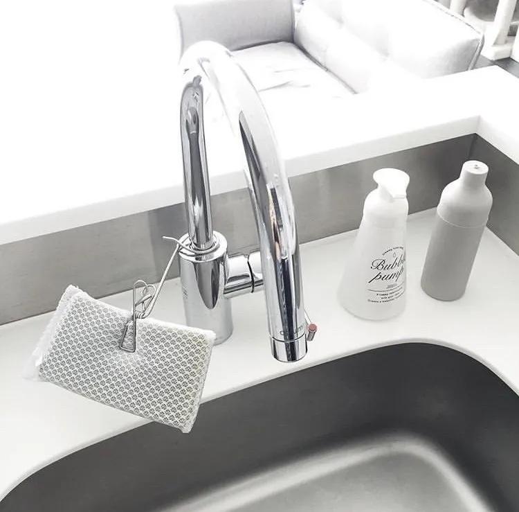 很多人在水槽附近安装海绵架子或者海绵槽,其实这些都是厨房清洁的绊脚石。