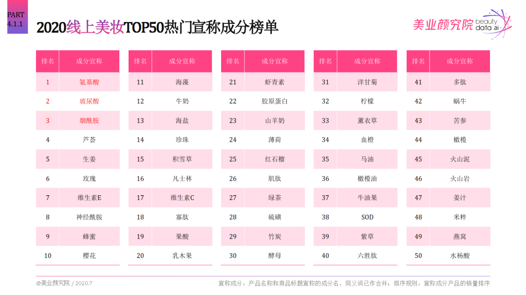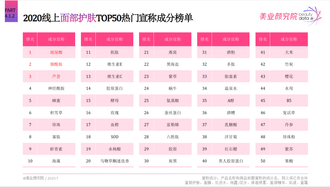 以上就是美业颜究院《2020线上美妆TOP100爆品及热门成分榜单》部分精彩内容。