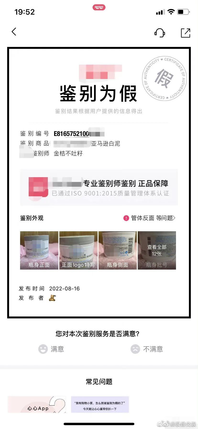 这罐面膜被鉴定为“假货”