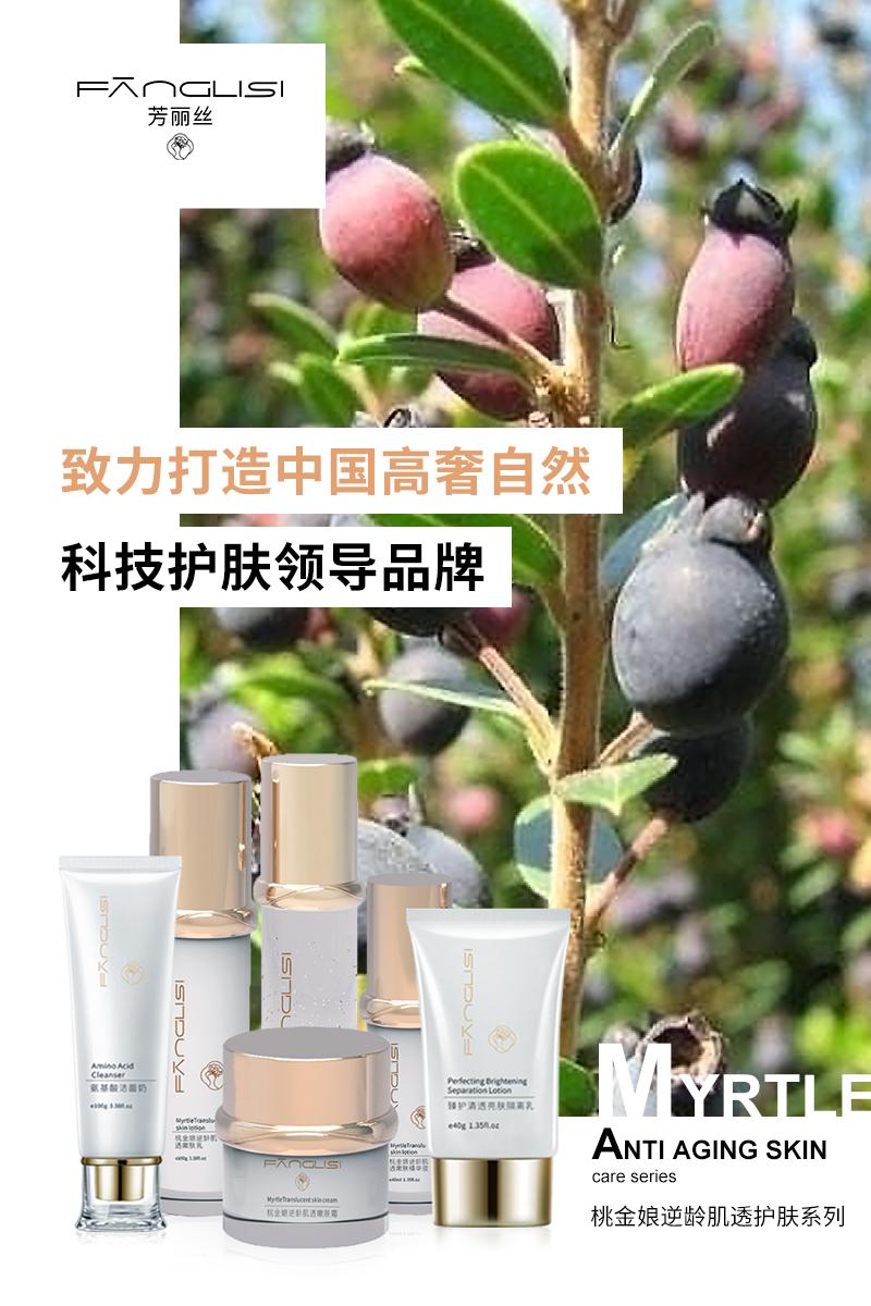 桃金娘是一种植物,具有强大的抗衰、抗老功,这也是芳丽丝打开国内化妆品市场的一个”杀手锏“。同时,作为注重自然与科技相结合的化妆品品牌,在采用具有强大抗衰、抗老功的桃金娘的同时,也利用现代技术,在深入研究当前亚洲人,尤其是国人肌肤类型、肌肤问题的基础上,实现了自然与科技的相结合,推出了成分天然,果好的抗衰产品。