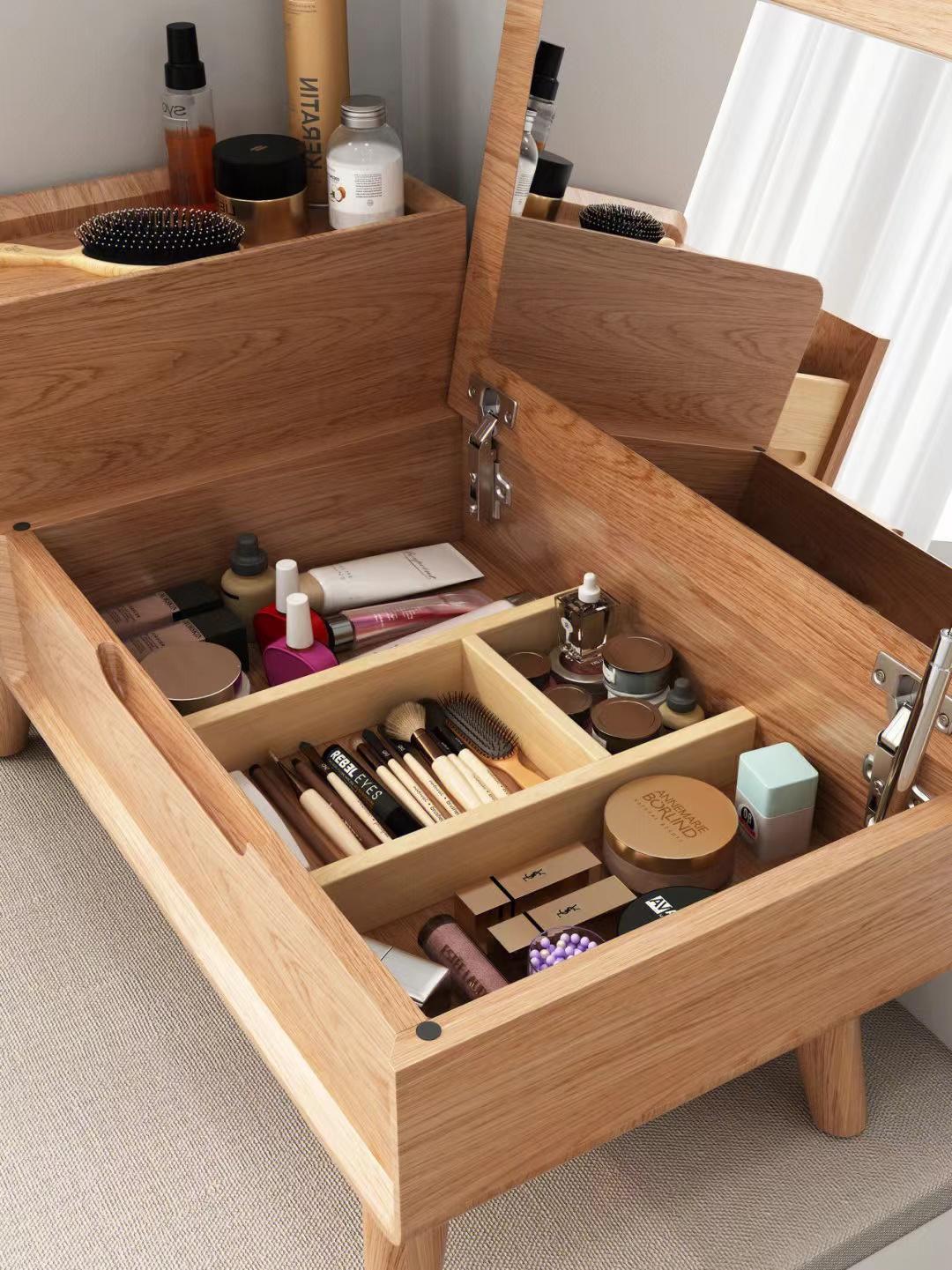 这个飘窗化妆桌,身形小巧,占地仅0.24㎡ ,占地面积小但是收纳能力很足