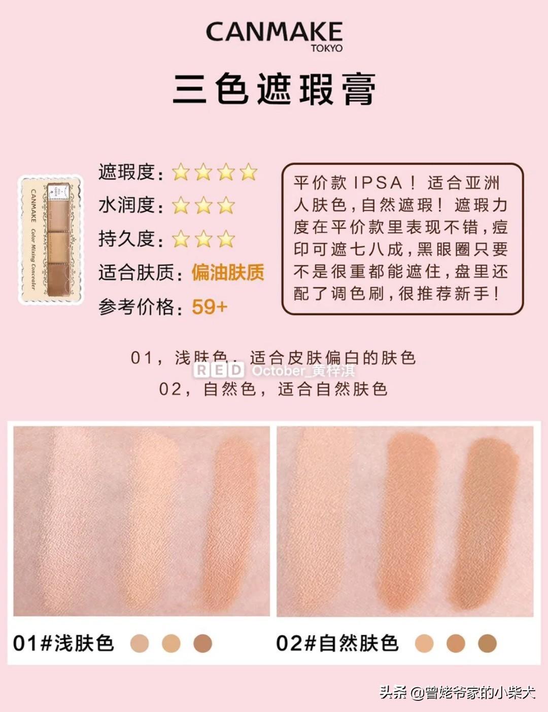 这盘可以算网红遮瑕了!6个颜色100+,性价比可以说是很高了,可以单色、叠色、混色,功能很全!膏状对干皮来说会有点偏干!适合混油!
