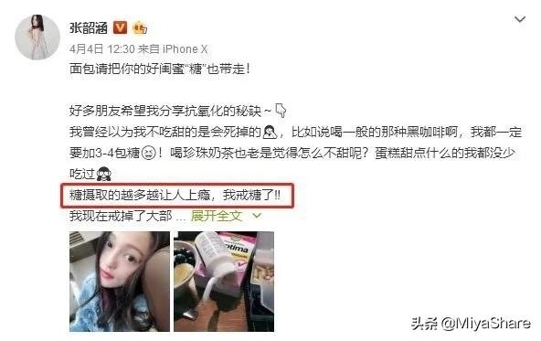 张韶涵参加《我是歌手》,一出场被网友感叹是不老女神。而女神在微博分享了一篇关于自己不老的秘诀就是——戒糖!
