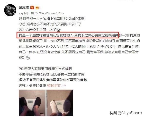 而小猪罗志祥也在微博po出自己戒糖、戒淀粉42天瘦了8KG。于是商家更是抓住时机开始宣传抗糖化的重要性。