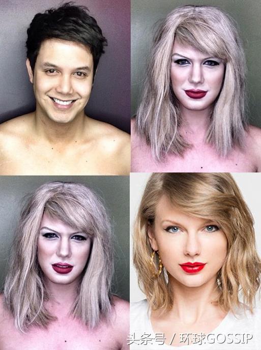 差点忘了说,这位化妆师名叫Paolo Ballesteros,30多岁,不仅在化妆方面有着超强的天赋,自身也是个演员和主持人,看Paolo变妆的吉吉可还行?一定要挑毛病的话,似乎他本人比吉吉胖了一点点。