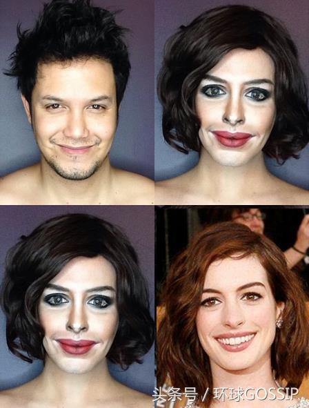 Paolo变妆安妮·海瑟薇,或许乍一看觉得这太不像了,可转念一想,化浓妆的海瑟薇,也就是这样了!
