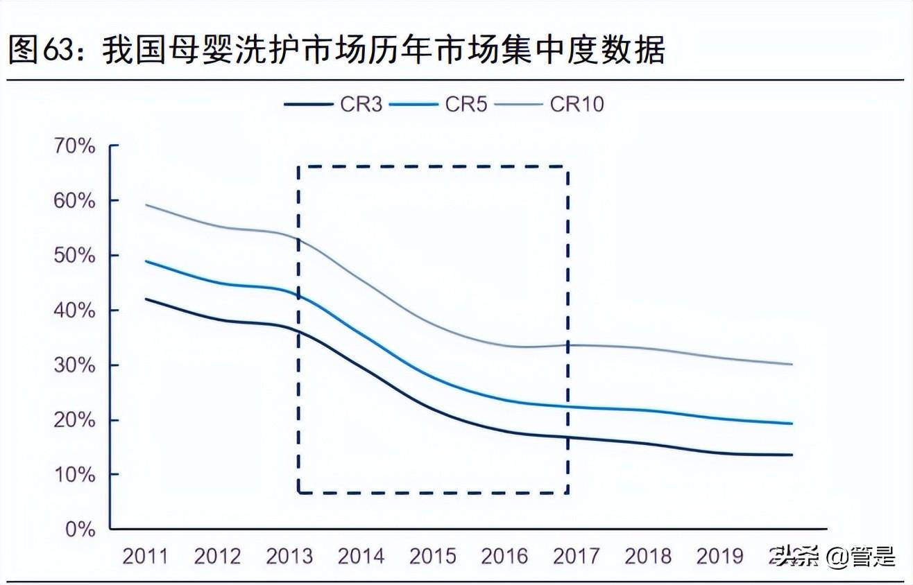 我们认为,目前我国母婴洗护市场起步较晚,目前尚处于发展前期,市场集中度下降趋势为短期,长期随着头部品牌建立更为深厚的研发壁垒和消费者心智,优势壁垒仍将逐步扩大,未来随着更多的本土品牌通过产品、渠道、营销等层面积极布局发展,有望诞生出头部国产母婴洗护龙头。