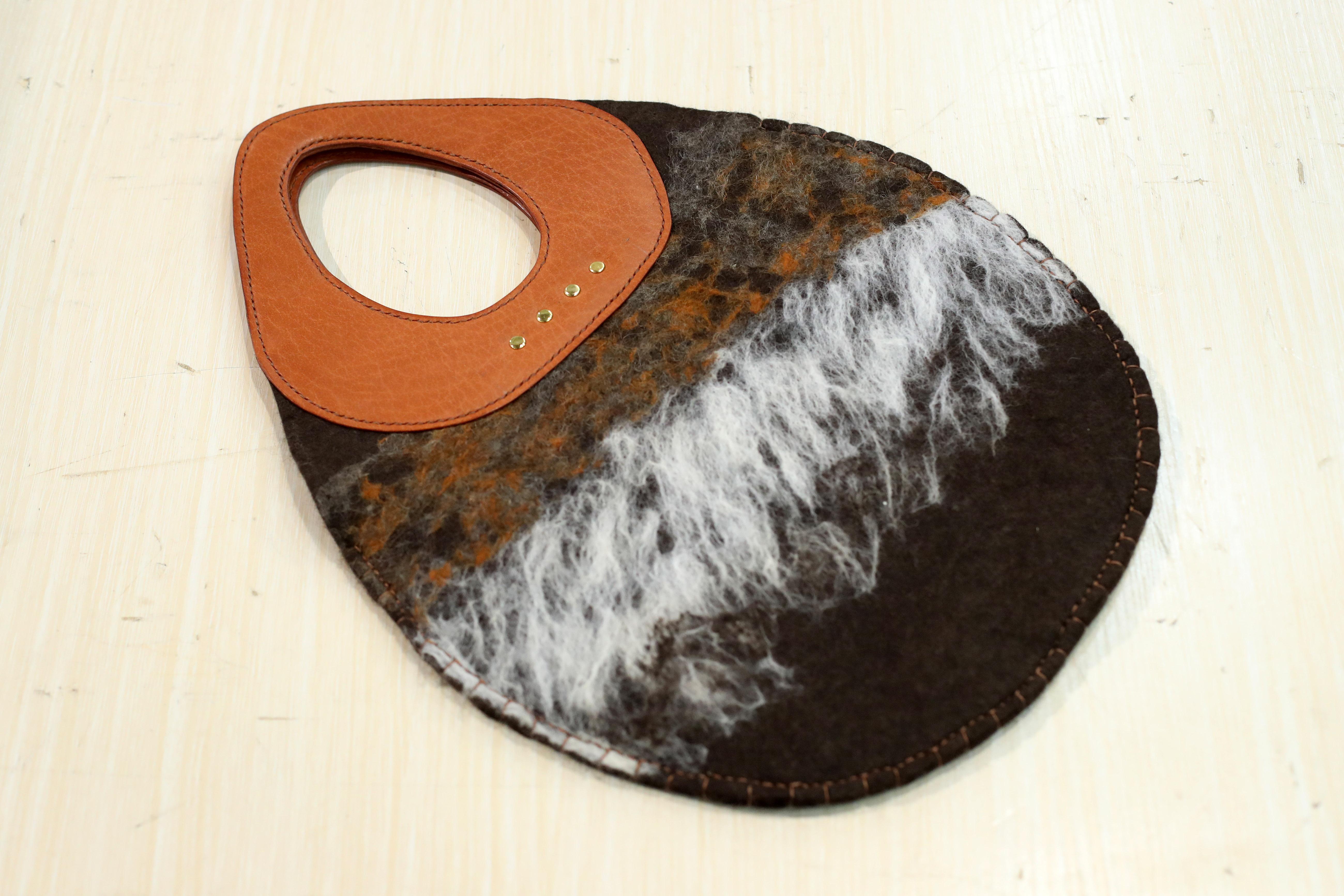 卓玛吉来自青海果洛,此番带来的所有牦牛绒制品都是她来沪参加高校非遗研培计划后,与设计师共同开发、制作的新产品。“以前藏族的帽子都是用羊绒做的,下雨、下雪,一沾水就很重,相比之下,牛绒不太沾水,轻得很。”牦牛绒是牦牛身上纤细的、在头颈附近的绒毛,采集过程中需要在其自然脱落的过程中用手一点一点去扒。过往,受限于牦牛绒处理的技术,她们在果洛很少做牛绒产品,“参加研培计划后,我学习了澳大利亚的湿毡工艺,上海的老师、设计师与我们一起开发了牦牛绒的包袋、毛毡、挂件,带来很多新的想法、新的设计。”在当地,卓玛吉一面与家乡的20多户牧民组成合作社,共同制作牦牛绒产品;一面通过上海举办的设计周、博览会等平台,为产品寻找销路。“上海的设计师也会通过自己的渠道,为我们拓宽销路。”