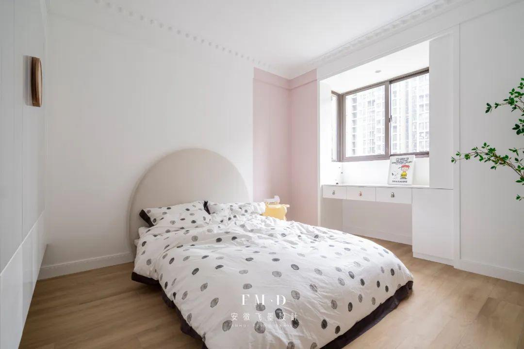 带飘窗的卧室,飘窗也是梳妆台的好去处。