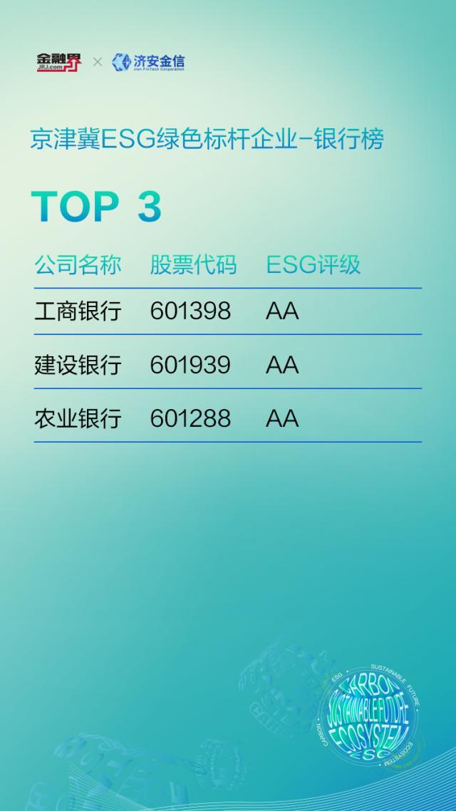 京津冀ESG绿色银行机构榜单: