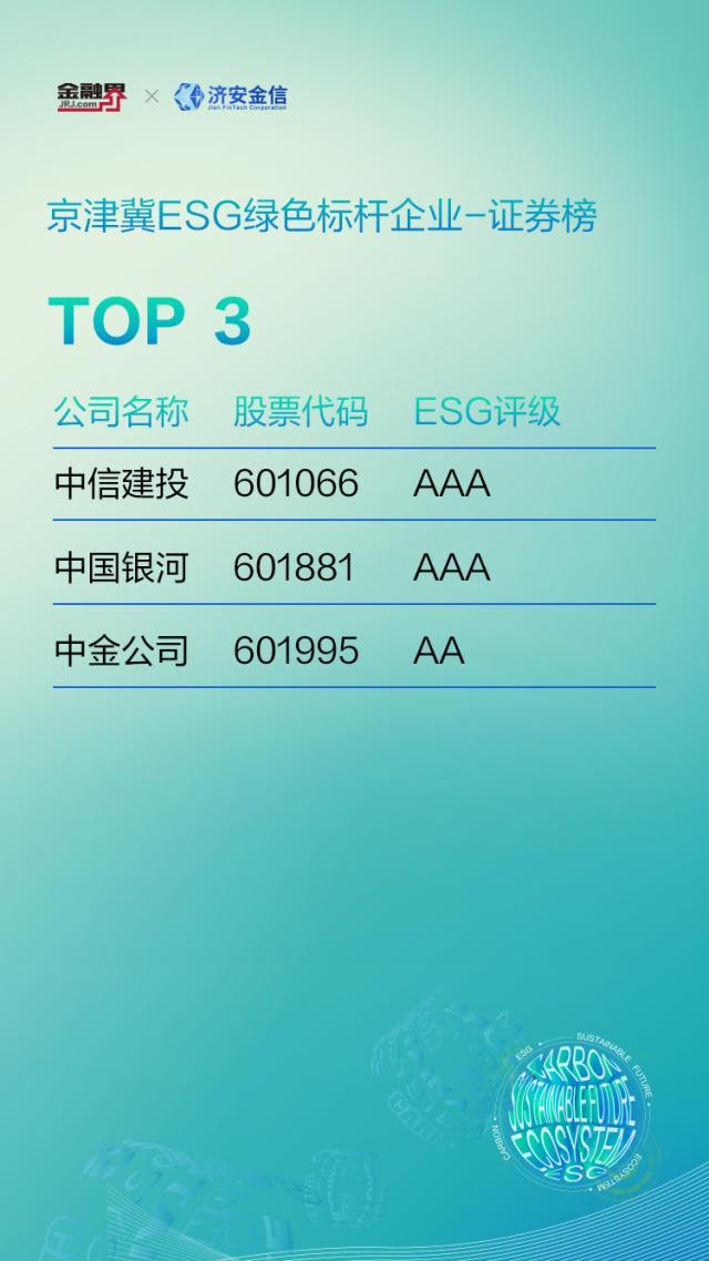 京津冀ESG绿色证券机构榜单: