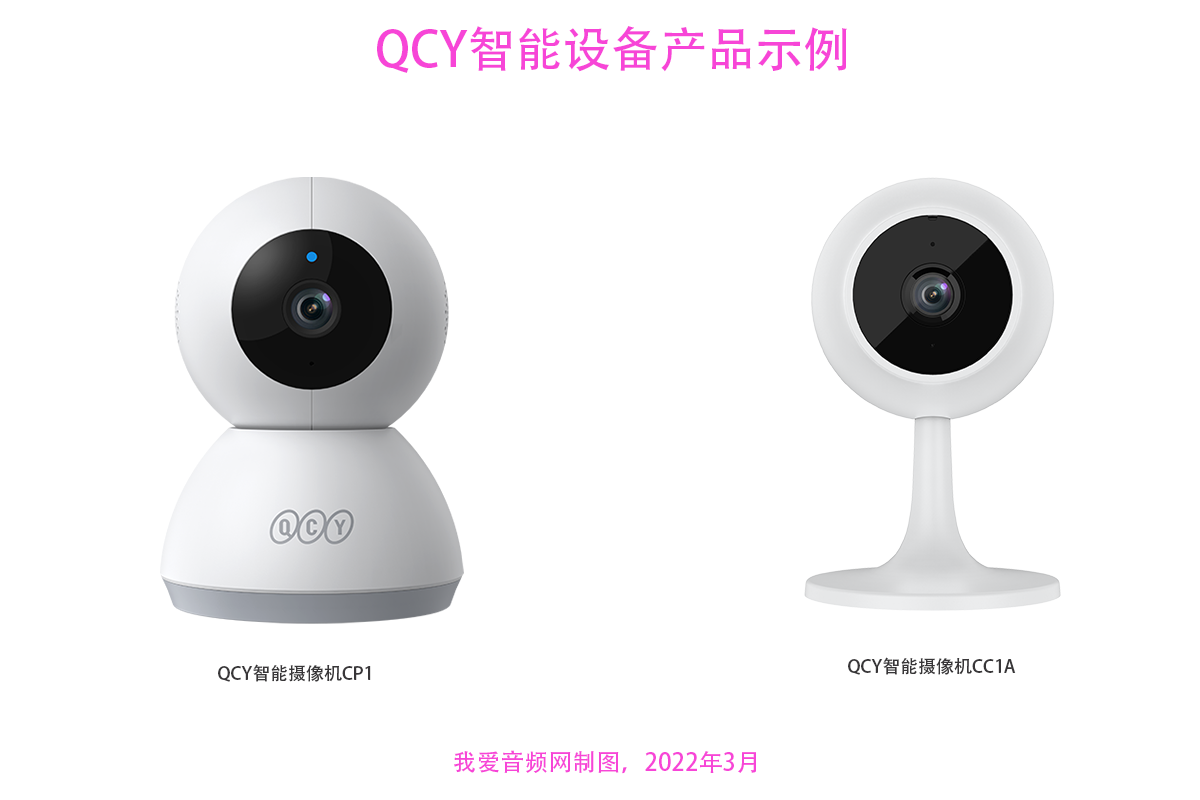 QCY智能摄像机CP1具有360°云台全景视角,1080P高清画质,异常行迹无所遁形等特点,能够智能移动跟踪+侦测,锁定移动物体转向,自动推送告警信息,支持AI人形侦测,过滤大部分无报警,让报警更加准确。QCY智能摄像机CC1A有1080P高清画质+200W像素,视频画面一目了然等特点,支持10米红外夜视、智能人形和移动侦测,配置6颗红外夜视灯。