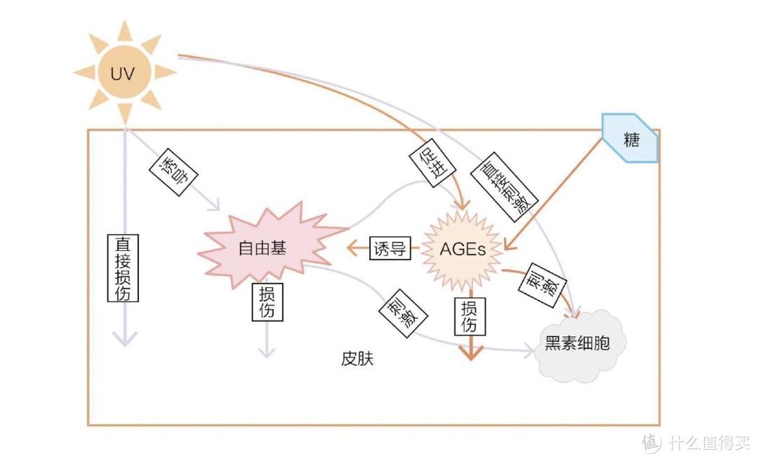 糖+蛋白质合成“晚期糖基化终末产物”,俗称AGEs,这个东西是让皮肤衰老的一大杀手。