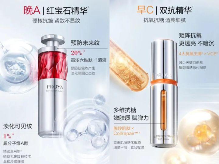 此阶段珀莱雅可谓是升维成长,着重强调当下市场热门的成份:A醇及维C,并且功也由之前的清洁保湿进阶为抗衰类型的精华。在这一阶段,品牌战略单品形成。