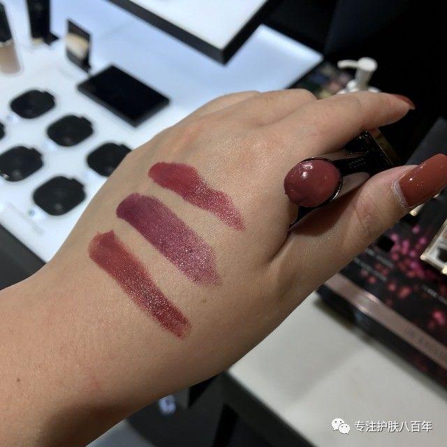 试色的3个颜色从 上到下依次为 106号红懮莉,107号 宵葡萄,108号 甘蔷薇