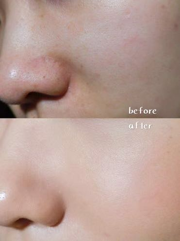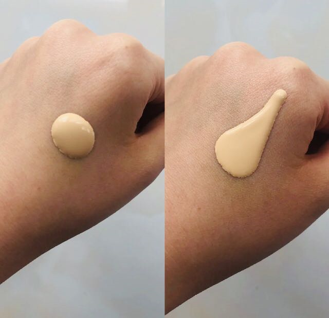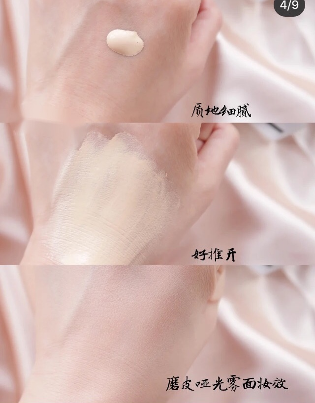 细腻的半流动质地,容易推开。拍匀后就是磨皮哑光的雾面妆。