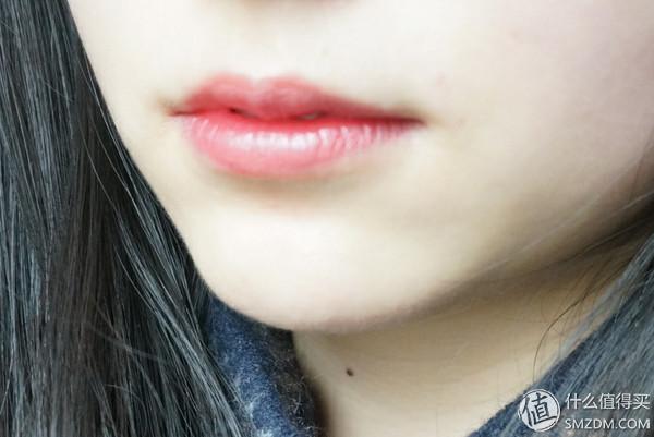 我平常是薄涂一层,用纸巾轻轻抿一下,在我嘴上显出一个偏橘的日常水红色。