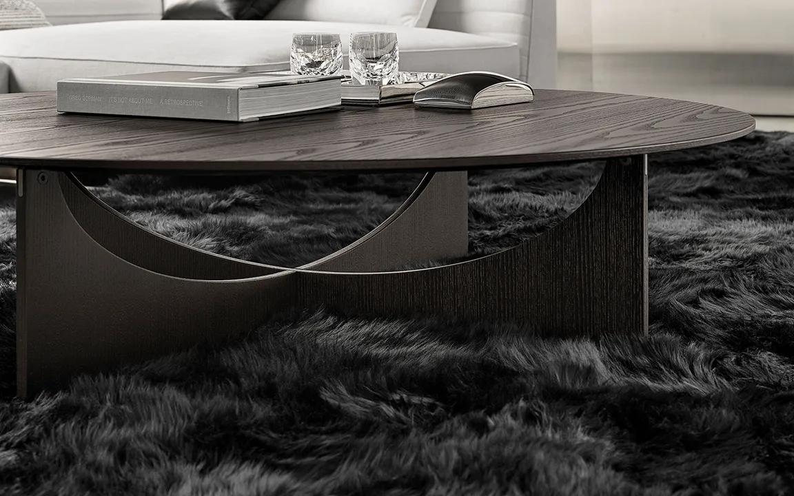 X 形雕塑底座是其强烈的区别标志,底座覆盖着灰烬,Moka 清漆饰面,圆形或方形的顶部,在 Bianconero大理石或拉丝白蜡木,带有 Moka 开孔漆面。