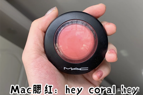 质地带珠光细闪,桃红人鱼姬色腮红,上脸绝美,每次化妆必涂!