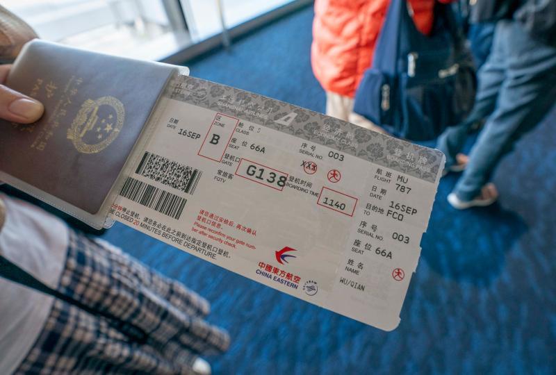 搭乘卫星厅启用后出港航班的意大利旅客马西姆,也成为该航班首位登机者。(孟雨涵 摄)