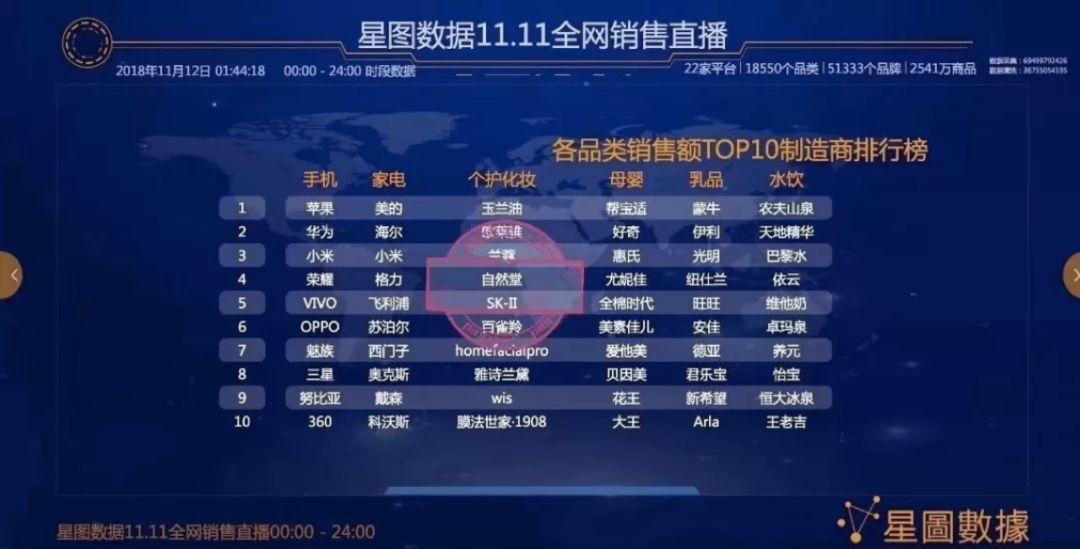 星图数据公布的双11全网销售排行里,自然堂以5.33亿的成绩力压SK-II、雅诗兰黛等国际,位列全部个护化妆品类第4名、国货第1名的位置。