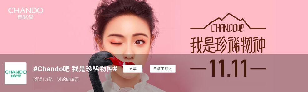 截至双11晚,自然堂#Chando吧 我是珍稀物种#社交媒体话题阅读量突破1.1亿,线上线下获得30亿次曝光。