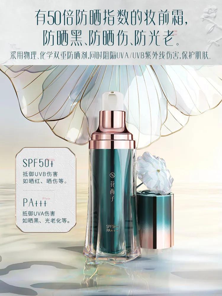 害,这个小编不用多介绍了吧,李佳琪也有一直在推荐的一个产品。这夏天也快来了,一想到要往脸上一层一层的糊防晒、隔离、妆前,直接崩溃。三合一防晒,妆前、防晒、提亮就选择花西子SPF50+防晒妆前霜。更少的步骤达到更好的果,不假白,不油腻,自然散发好气色。剁手党的姐妹们赶快加入吧!