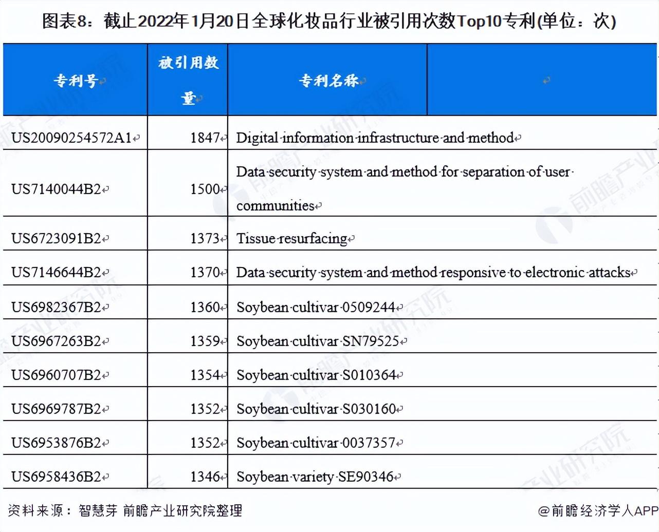 可以进前十。这个牌子,在化妆品原液和玻尿酸饮料垂直领域,细分领域,做出了非常出色的成绩。他们主打的化妆品,相对安全,足够好用。——原标题:收藏!《2022年化妆品行业技术全景图谱》(附专利申请情况、专利竞争和专利价值等)