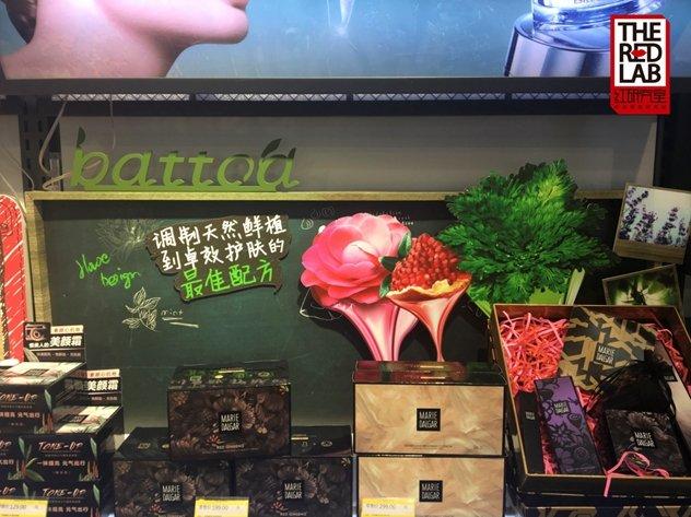 在正门口的主题区和热销产品堆头上,玛丽黛佳的素颜霜、小蘑菇以及美宝莲的眼唇卸妆液、口红等彩妆爆品又进行了多点陈列,以强化顾客对这些畅销品的印象。