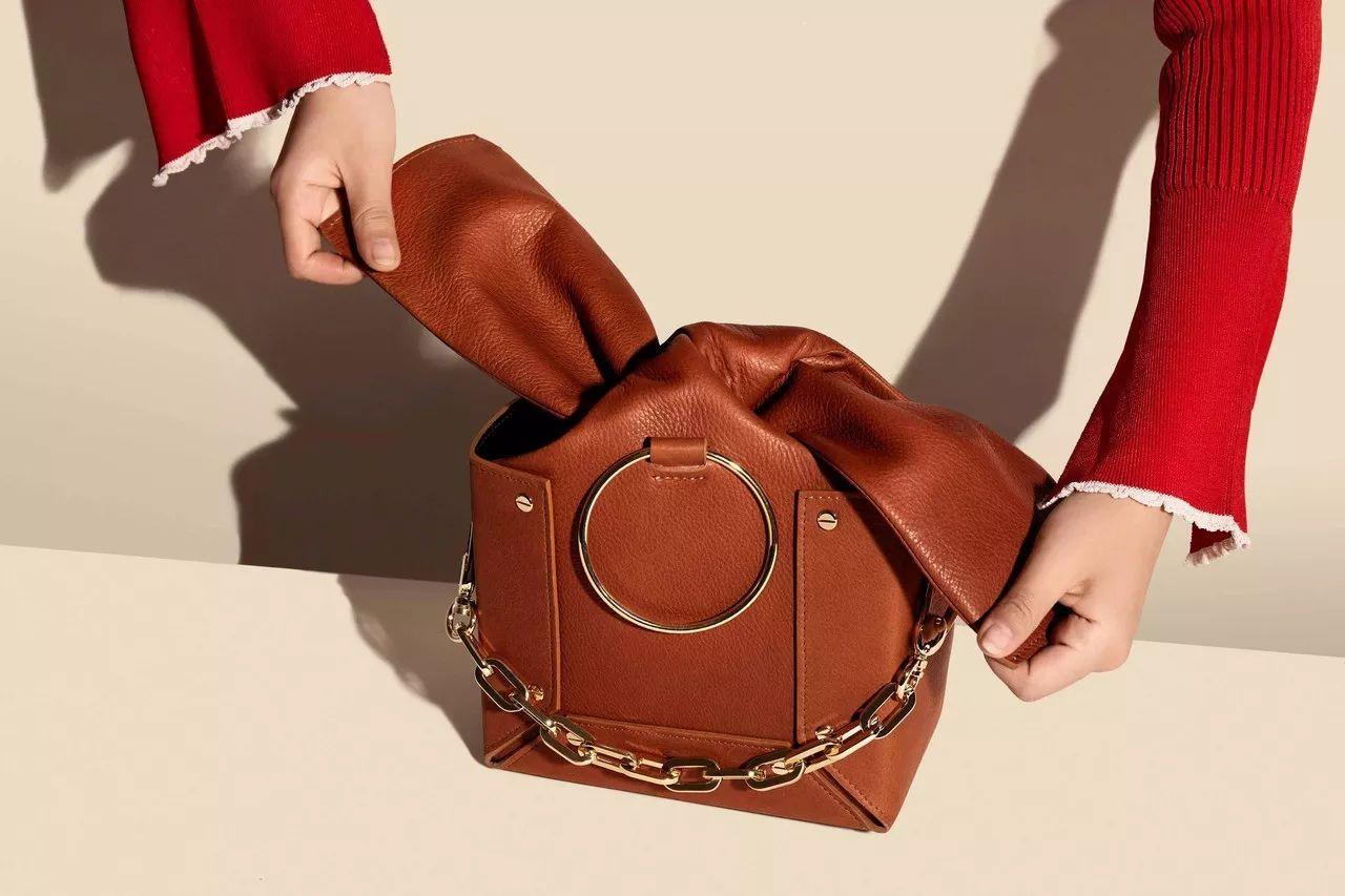 不规则圆环的灵感来自竹节,既是包包上的装饰,也可以变成手提包的提手。