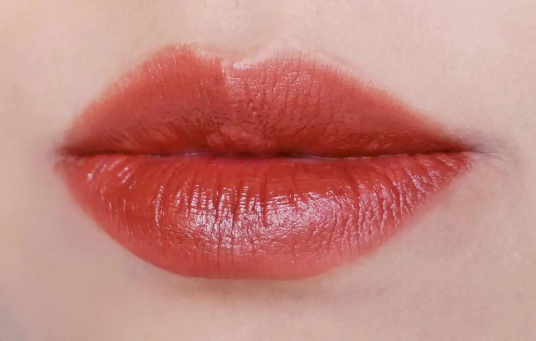 上嘴之后有很高级的日杂感,尤其厚涂搭配一些深色服装时,就会显得格外出挑;薄涂的话,橘调更突出,看起来也更温暖活力些。