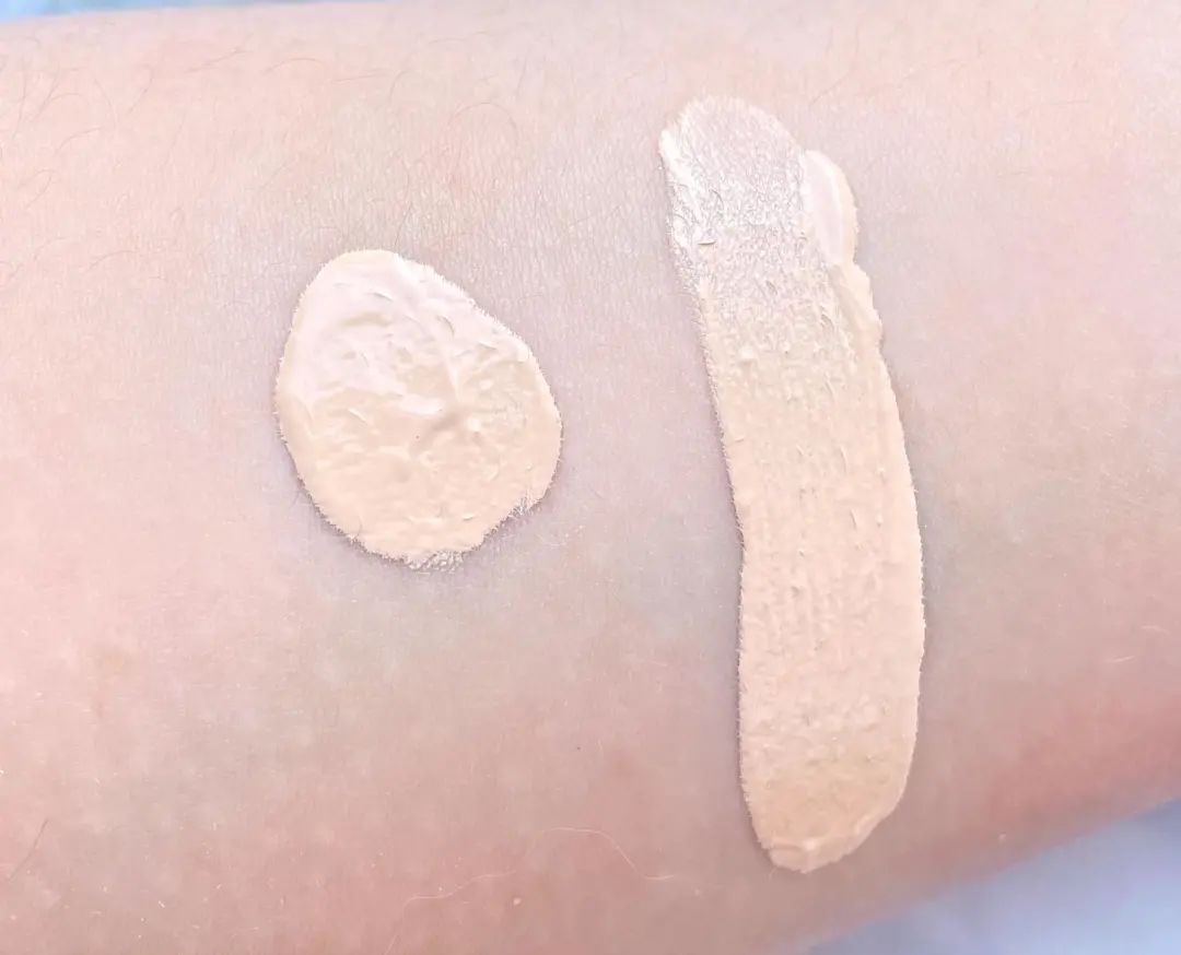 它本身没什么流动性,接近于浓稠状的乳液质地。推开之后的粉体细腻,不会有某些平价粉底液的粗糙颗粒感。