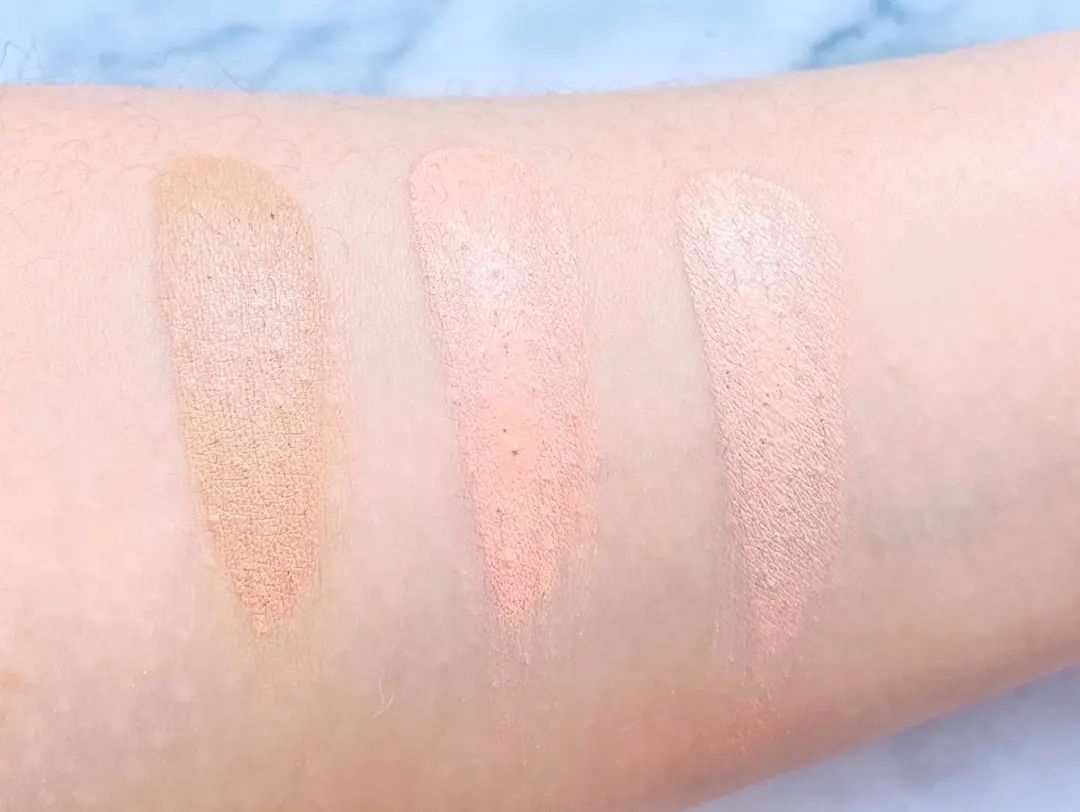 尤其中间那块偏橘的三文鱼色,拿来中和黑眼圈是一把好手。另外一深一浅两块肤色,也可以根据不同瑕疵的状态去调和搭配使用。