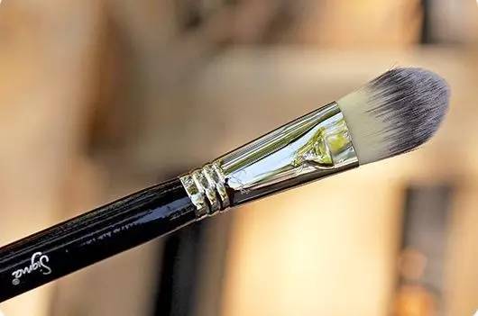 斜头刷的毛比较密集能够推开较浓稠的粉底液,但也容易因为手法不当留下厚厚的刷痕,还是需要多多练习正确的上妆手法。