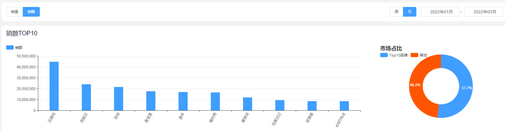 近两年的彩妆市场,凭借社交媒体的营销,崭露头角的品牌层出不穷。从一季度的线上品牌销售榜来看,老品牌依然稳扎稳打,贝德玛、芭妮兰等老牌卸妆主力军并没有失守主要阵地,但从增长方面来看,主客群在18-25岁的新锐国货彩妆品牌的实力不容小觑,在资本和消费者的追捧下,市场集中度上升。