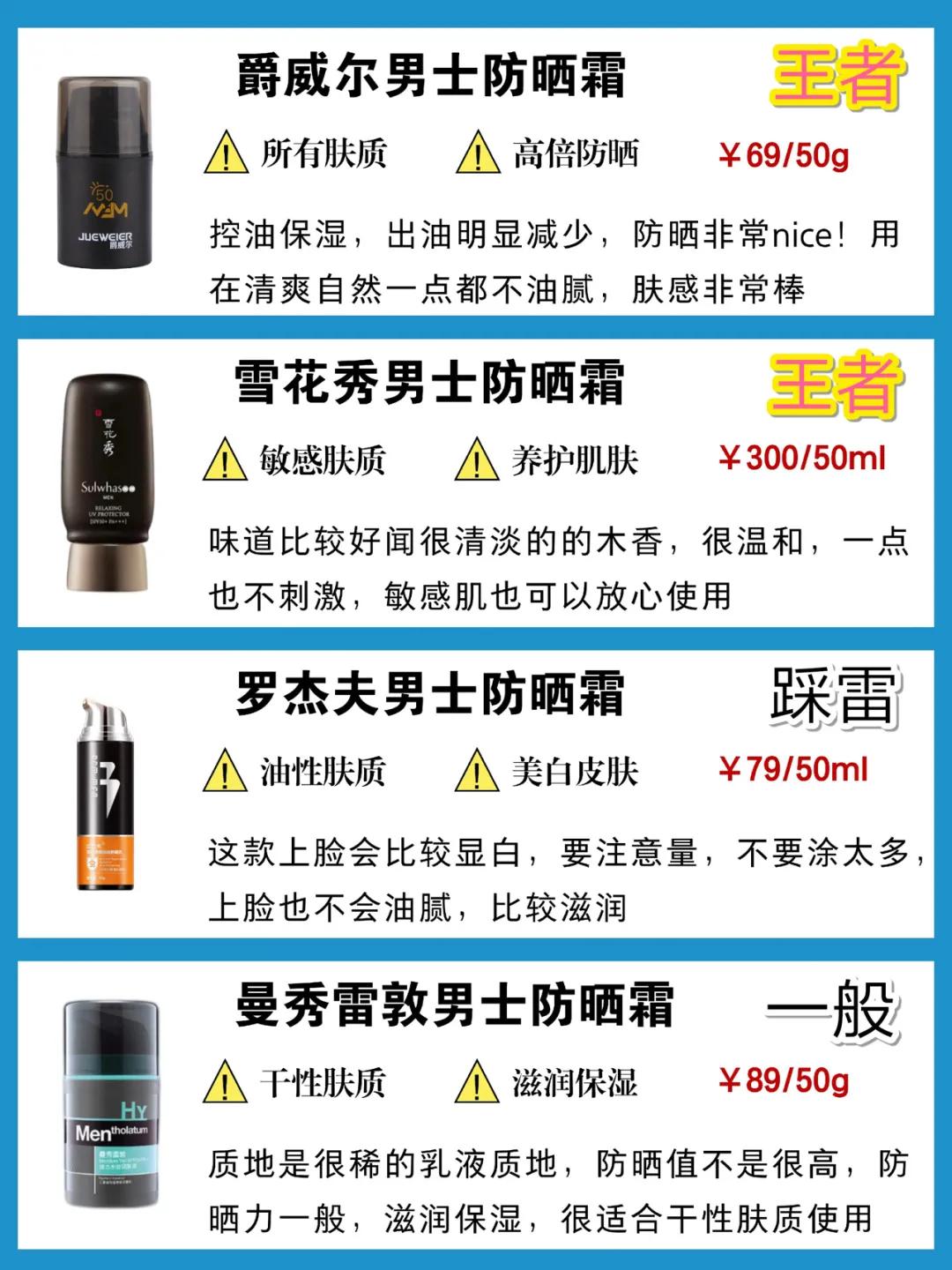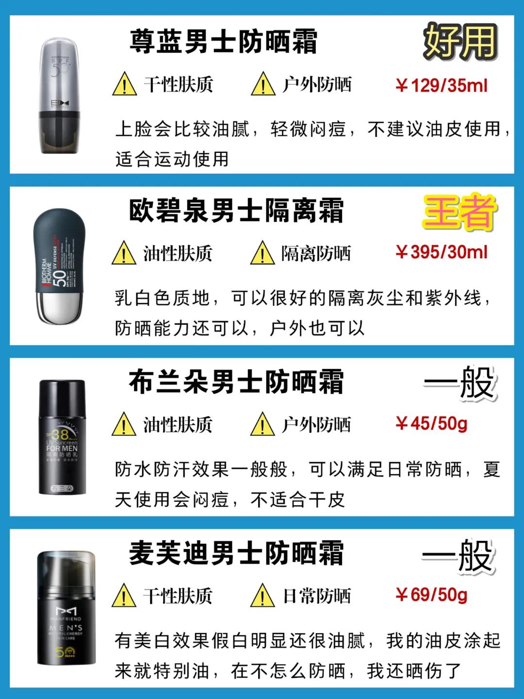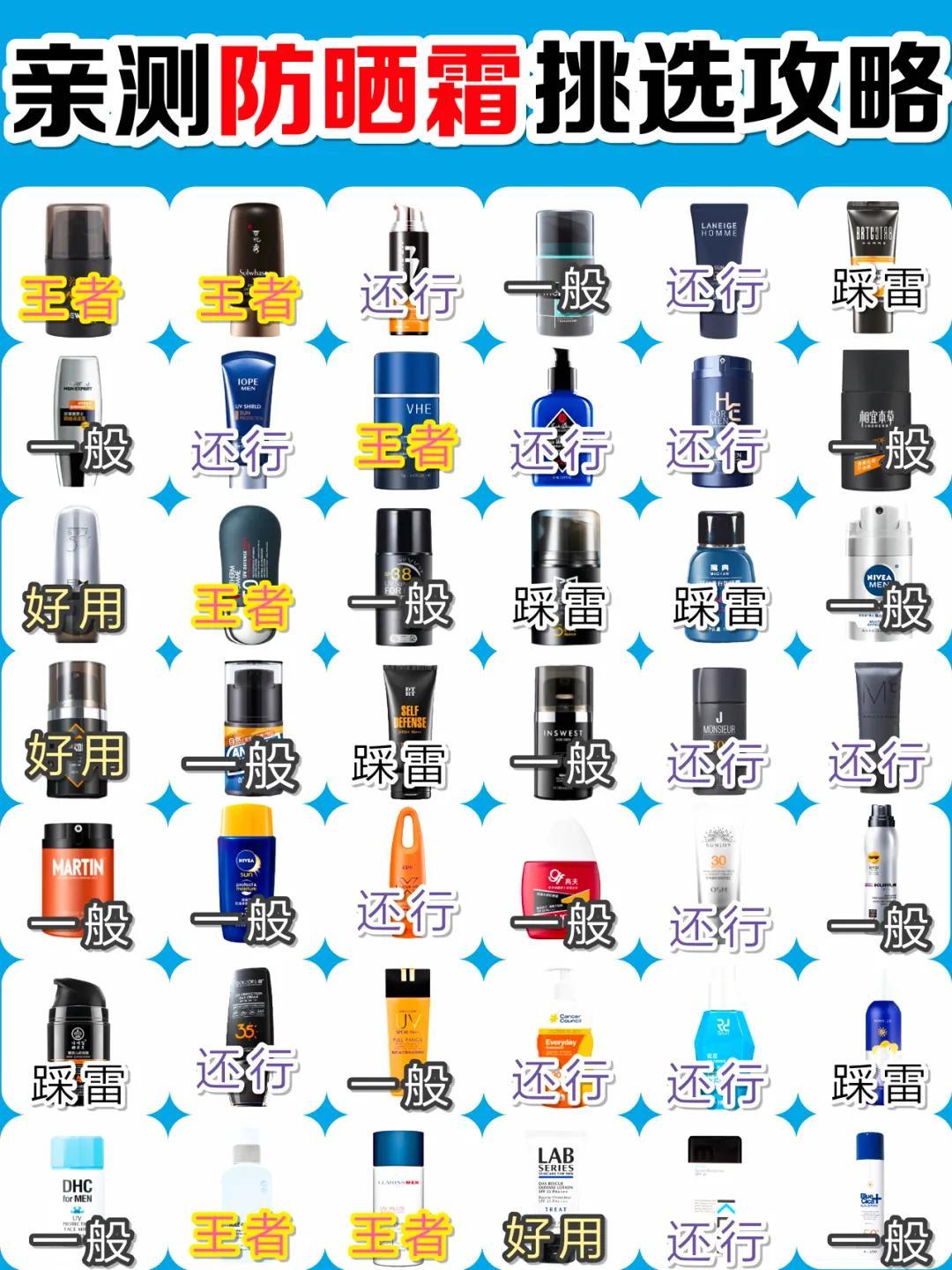 今天给兄弟们整理了一份42款男士防晒霜测评