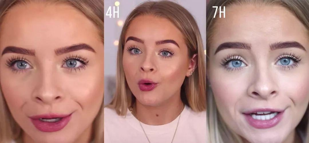 官方写的是24h持妆,国外博主实测4个小时后妆感没什么变化,会稍微暗一丢丢,鼻头一点出油但是是好看的。再到7小时后整体看起来也都不错,拉近看有一点的浮粉,但也不会有斑驳。