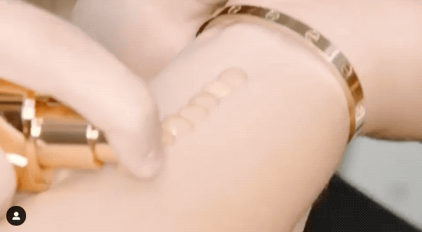 这款就和前面FENTY BEAUTY按压的不一样,它需要你用手挤压半透明的位置才出液体。