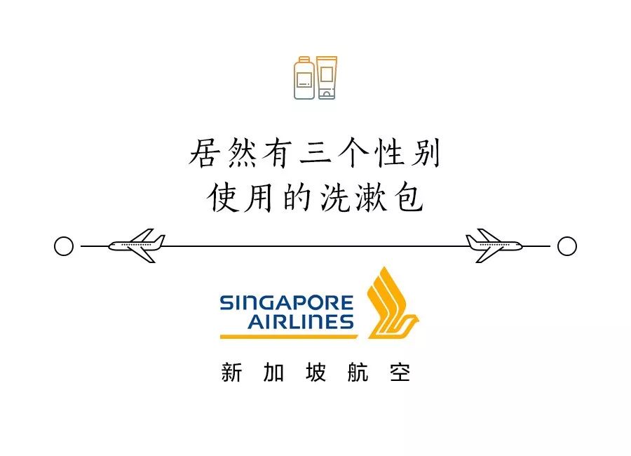 而如果你从其他区域乘坐新航头等舱前往新加坡,则会发放中性通用的洗漱包,黑色的化妆包外观上是男性与女性洗漱包的结合体,其中包含一个70g的香氛蜡烛、洗手香皂、唇膏和身体乳。