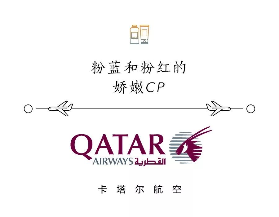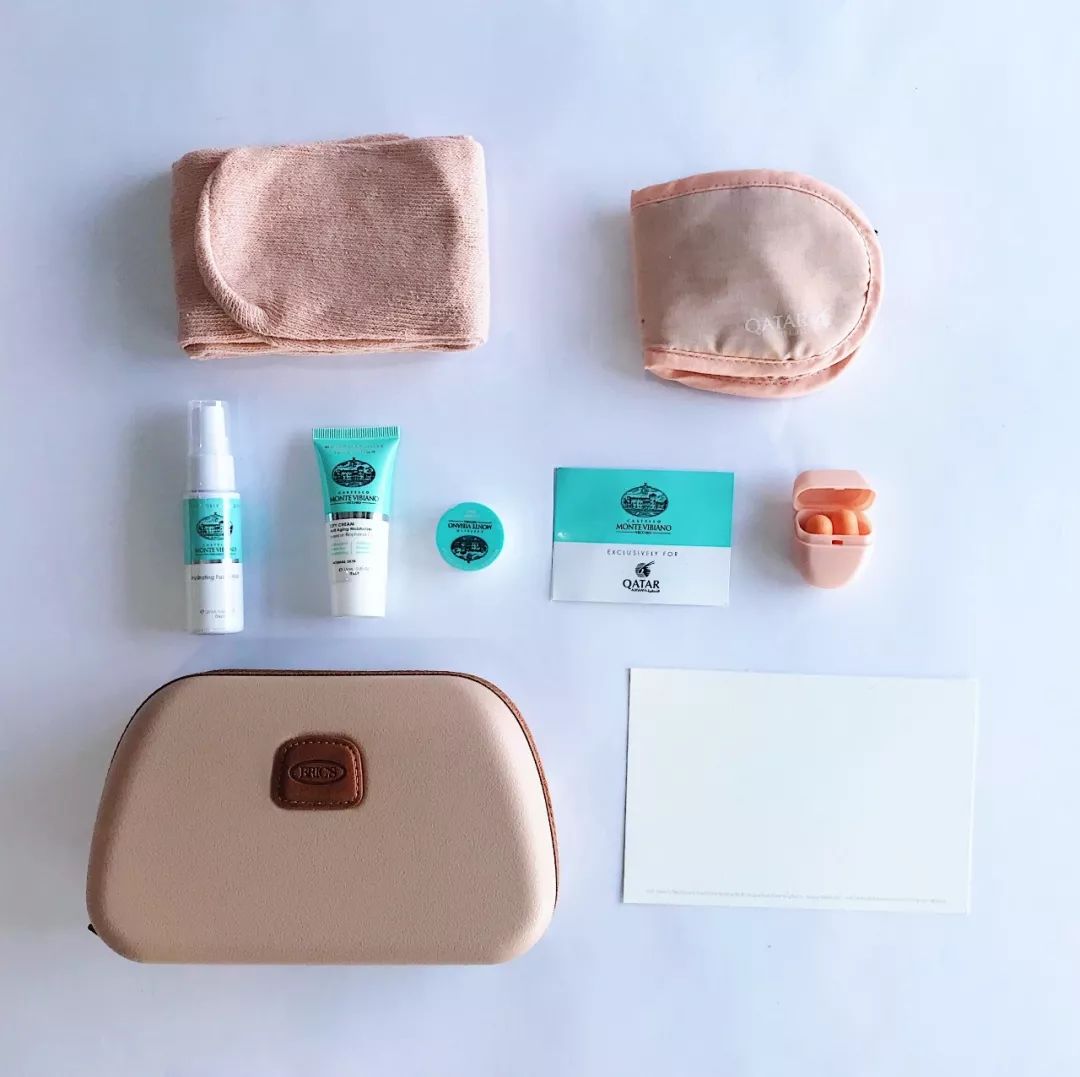 卡塔尔航空的洗漱包是与意大利箱包品牌BRIC'S的合作款,男女款的蓝粉色调赚足了CP感,在一众走高冷风的洗漱包内显得尤为出挑。简单的设计和配色即使未来另做他用也不露违和。